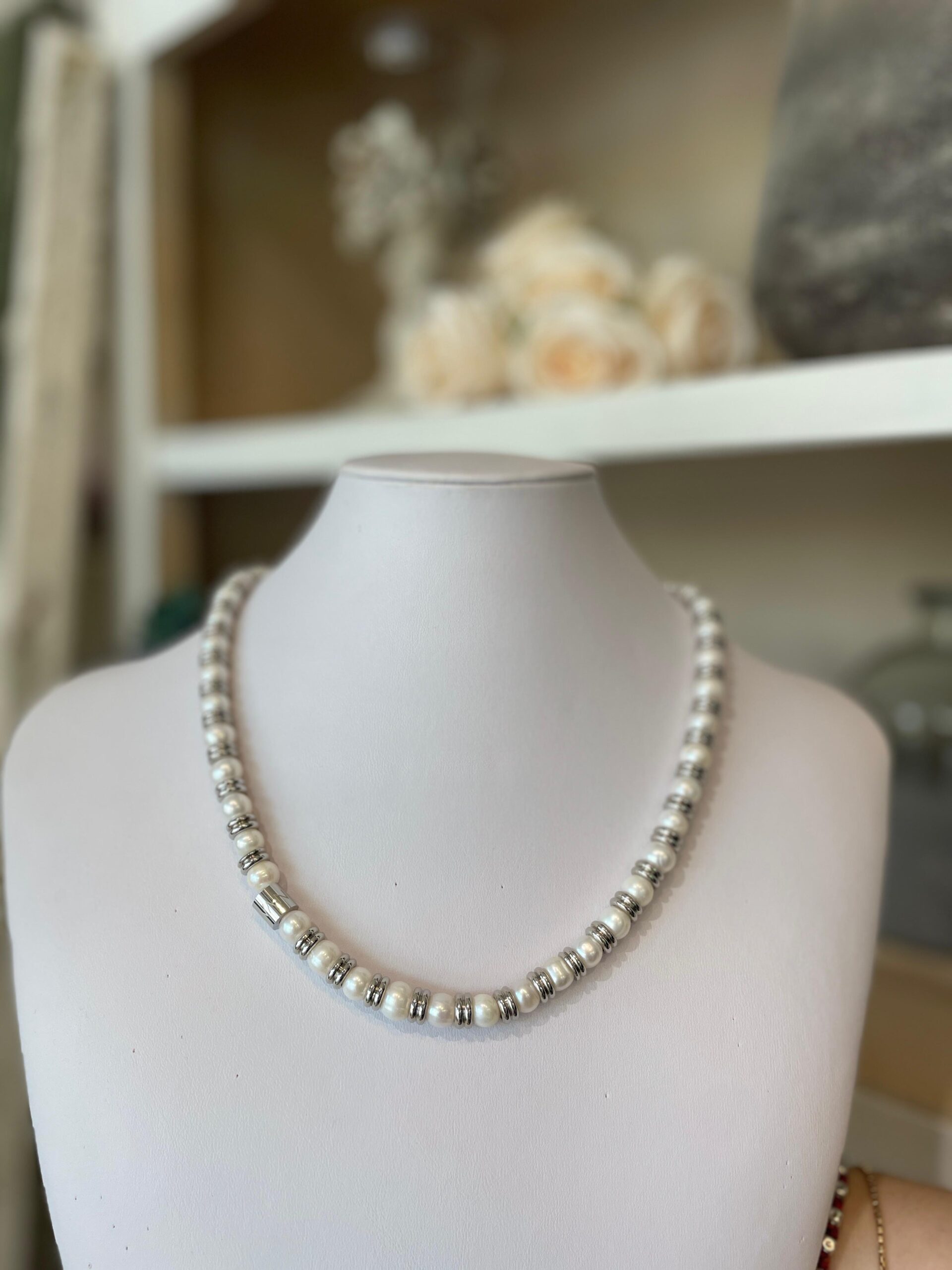 Collana Ivan Basile, acciaio e perle.