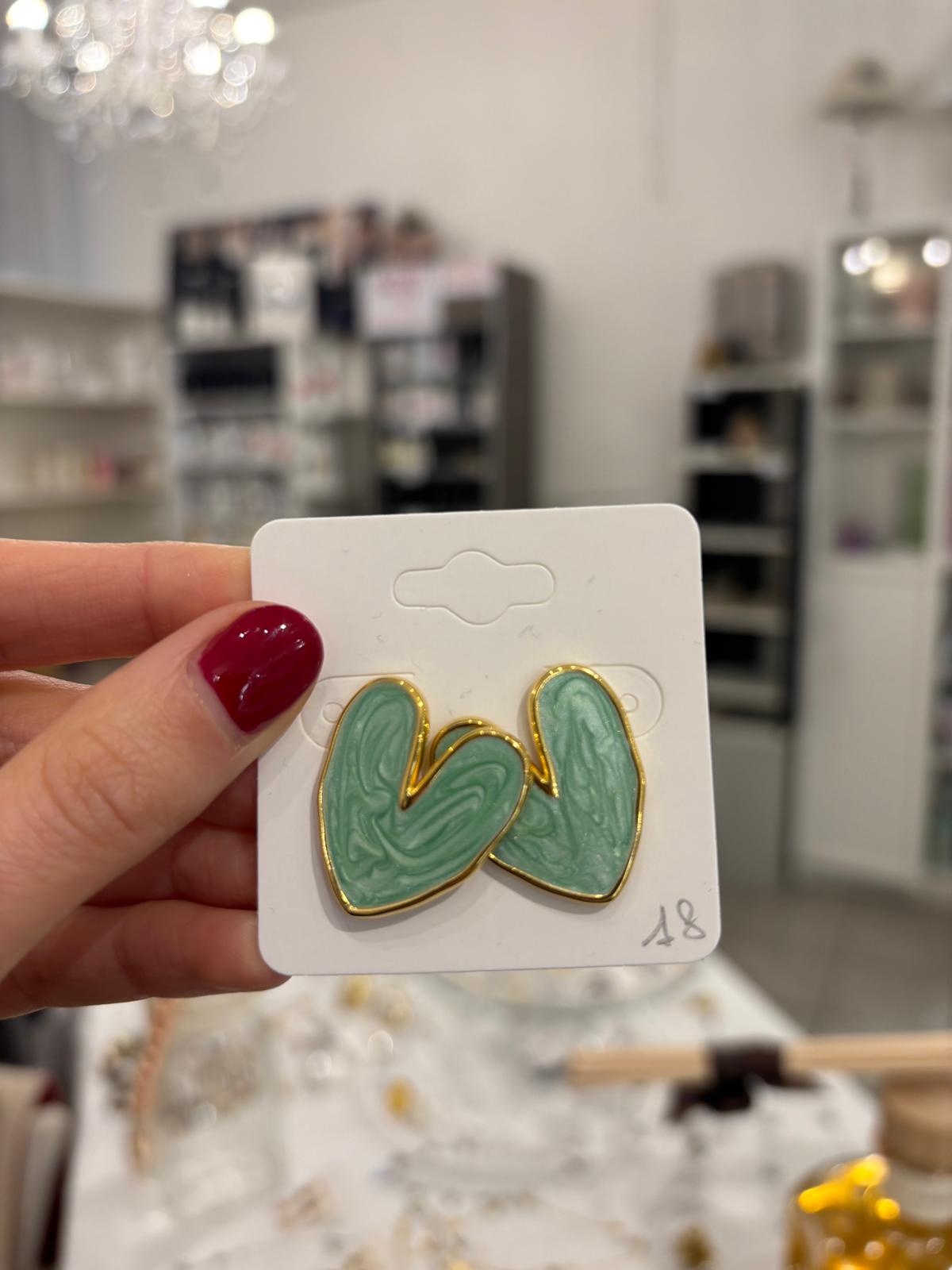 Orecchini in acciaio color oro, marmorizzati verdi.