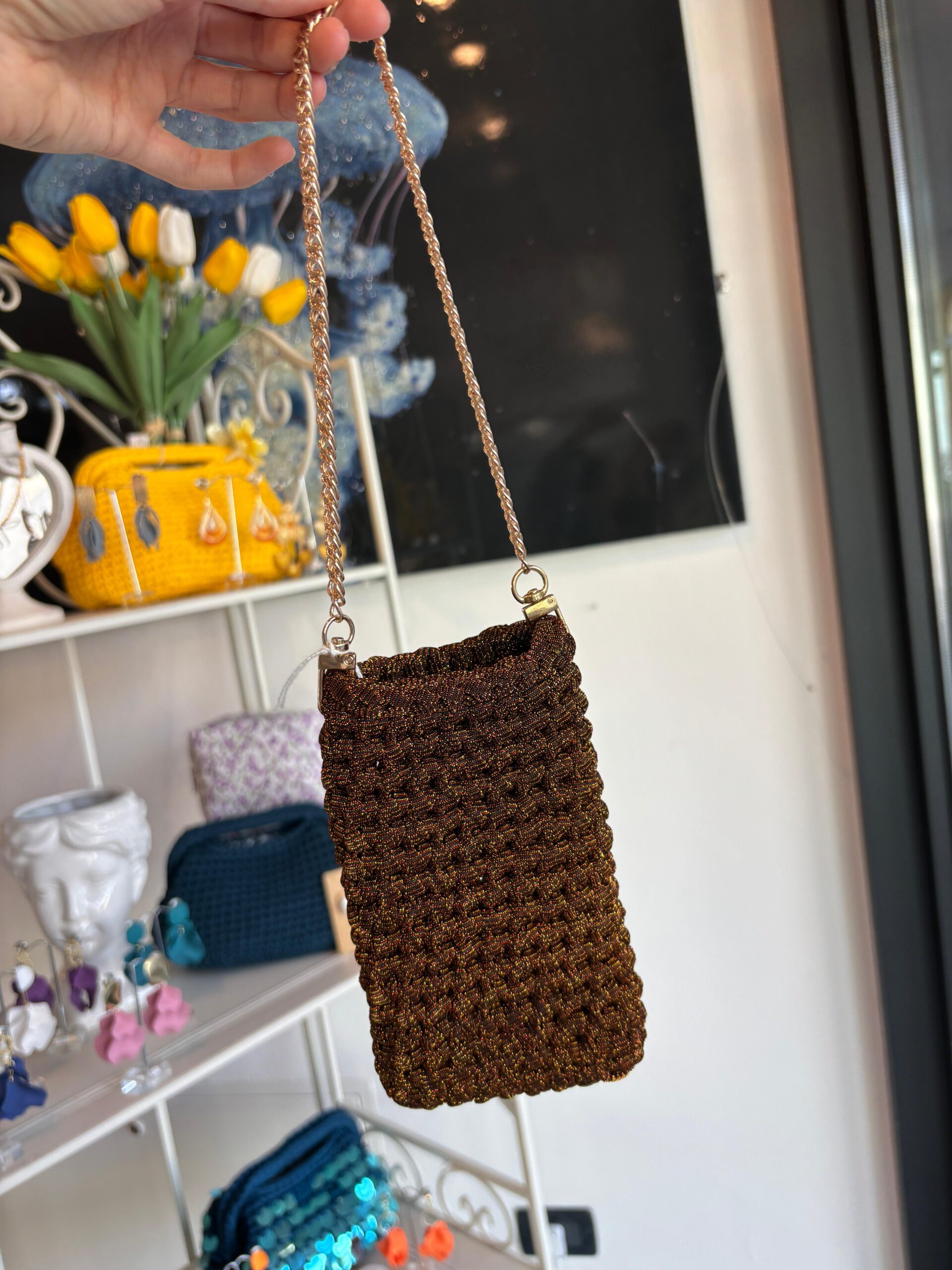 Portacellulare fatto a mano con catena.
